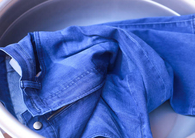 Cách giặt: Hòa xà phòng vào nước rồi ngâm đồ jeans trong 60 phút và giặt bằng tay, sau đó giặt lại bằng nước sạch.
