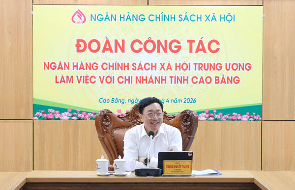 Phát biểu tại buổi làm việc với chi nhánh NHCSXH tỉnh Cao Bằng, Tổng Giám đốc NHCSXH Dương Quyết Thắng ghi nhận những kết quả mà tập thể chi nhánh đạt được trong thời gian qua. Theo ông, nguồn vốn chính sách đã tạo điều kiện cho hộ nghèo và các đối tượng chính sách khác vay vốn để sản xuất, kinh doanh, tạo việc làm, tăng thu nhập, ổn định cuộc sống; đồng thời hỗ trợ hộ nghèo xây dựng, cải tạo, sửa chữa nhà ở theo Nghị định số 28/2022/NĐ-CP.