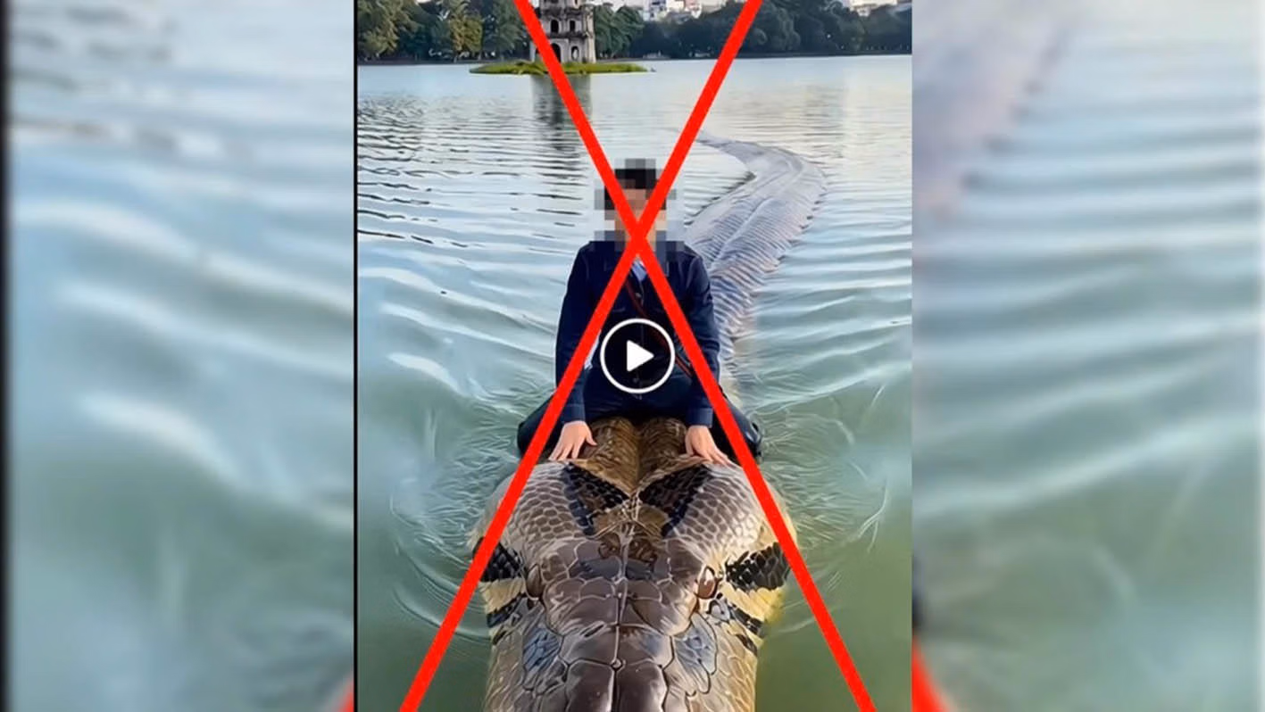 Ngày 25/12/2025, qua công tác nắm tình hình trên không gian mạng, lực lượng chức năng phát hiện một tài khoản mạng xã hội đăng tải video có tiêu đề “Truyền nhân Lạc Long Quân đây rùi”. Nội dung video thể hiện hình ảnh một người ngồi trên một con trăn khổng lồ bơi giữa hồ Hoàn Kiếm - hình ảnh hoàn toàn không có thật, được tạo dựng bằng công nghệ AI. Qua xác minh, Phòng An ninh mạng và phòng, chống tội phạm sử dụng công nghệ cao xác định chủ tài khoản là N.H.A. (sinh năm 1976, trú tại phường Thanh Xuân, TP Hà Nội). Làm việc với cơ quan Công an, N.H.A. thừa nhận đã sử dụng điện thoại để tạo video bằng AI, ghép hình ảnh cá nhân ngồi trên trăn khổng lồ tại hồ Hoàn Kiếm với mục đích “câu like”, “câu view” trên mạng xã hội…