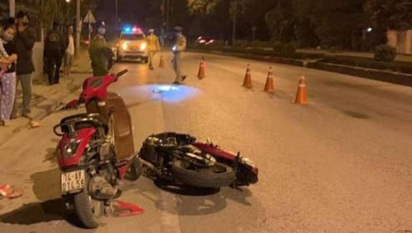 Khi đi đến địa điểm trên đã đâm vào xe máy mang BKS 14AV - 014.56, do chị Hồ Thị P. (SN 1990, trú tại phường Trưng Vương, TP Uông Bí, tỉnh Quảng Ninh) điều khiển.