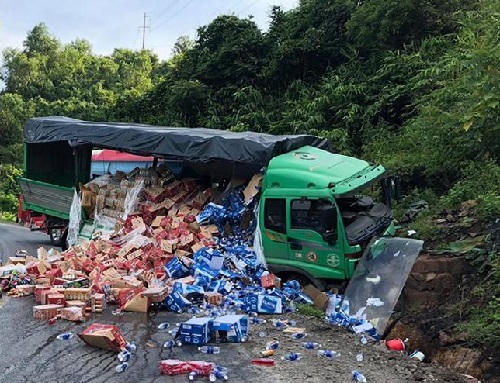 Tại Hòa Bình, khoảng 10h ngày 31/7, xe ôtô đầu kéo BKS 26C-039xx kéo theo rơ-moóc BKS 26R-003xx do Hà Văn Quang (SN 1985; ngụ huyện Bắc Yên, tỉnh Sơn La) điều khiển chạy hướng Sơn La - Hà Nội.