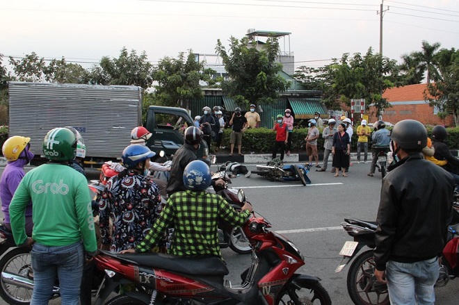 Sau va chạm, anh Đ cùng xe máy ngã văng ra làn đường ô tô. Do bị bất ngờ, tài xế điều khiển xe tải đang chạy phía sau không phản ứng kịp nên đã tông trúng.