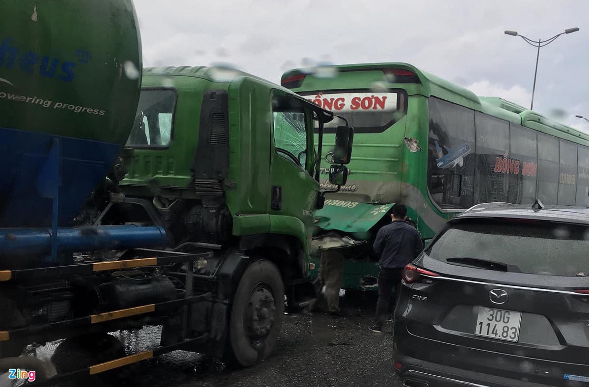 Xe bồn va chạm ô tô khách, vành đai 3 ùn tắc kéo dài