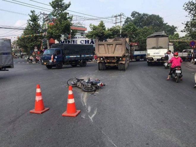 Khi xe ben đang ôm cua thì xảy ra va chạm với xe máy BKS 72G1-416.68 đang chạy bên phải do chị Ngô Thị Gấm (28 tuổi, quê Phú Yên) điều khiển chở theo 2 bé gái gồm Nguyễn Khả Y (8 tuổi, là con chị Gấm) và em Ngô Thị Bích H (7 tuổi, là em chị Gấm).