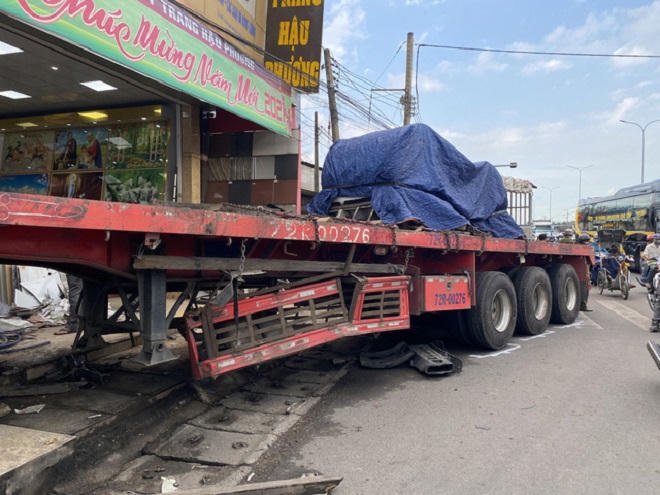 Khi xe đến xã Phước Thái đã bất ngờ tông mạnh vào ôtô tải và xe bán tải đậu bên phải đường. Chiếc xe đầu kéo tiếp tục lao về trước, đụng hai xe máy rồi cuốn hai phụ nữ cầm lái vào gầm.