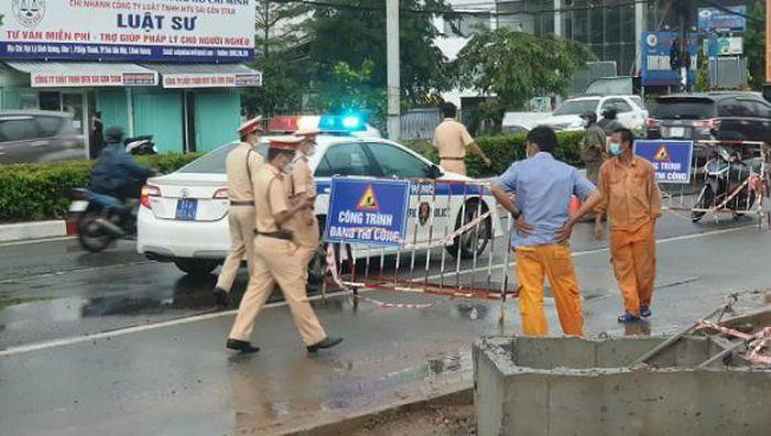 Thời điểm xảy ra tai nạn, trên địa bàn có mưa. Biển báo công trình đang thi công được đặt ra trong làn xe máy.