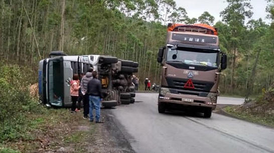 Hậu quả, xe ô tô đầu kéo bị lật nghiêng trên đường, may mắn lái xe chỉ bị thương nhẹ.