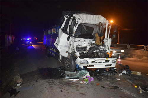 Khi xe di chuyển đến thôn Vĩnh An (Phổ Khánh, thị xã Đức Phổ) thì xảy ra tai nạn với xe tải BKS: 74C-048.90 do Dương Văn V (SN 1982) điều khiển đang dừng ở lề đường.