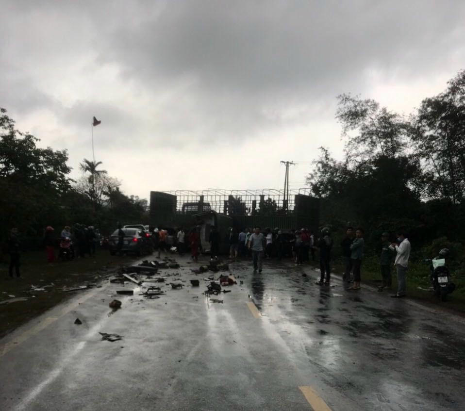 Phòng CSGT Công an tỉnh Hà Tĩnh phải điều xe cẩu đến để xử lý hiện trường, phân luồng giao thông. Đến 17h30 cùng ngày, hiện trường vụ tai nạn mới được xử lý xong.