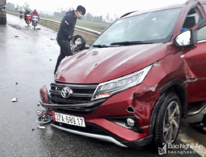 Tại Nghệ An, khoảng 17h, trời đang đổ mưa, xe ô tô 4 chỗ BKS 37A - 689.17 đi hướng Nghi Lộc - Đô Lương đã va chạm vào đuôi một chiếc xe tải chạy hướng ngược chiều.