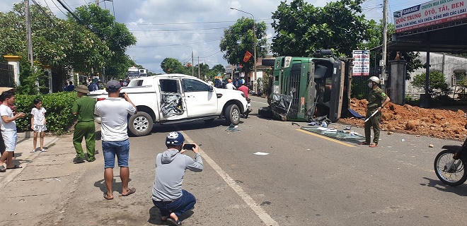 Khi xe tải chạy đến đoạn qua ấp Sông Cầu, xã Nghĩa Thành huyện Châu Đức thì gặp xe ôtô hiệu Toyota Yaris BKS: 56P-6908 do một phụ nữ điều khiển, lưu thông từ trong hẻm phía bên phải lao ra. Do bất ngờ, tài xế xe ben đánh lái sang trái để tránh rồi bẻ vô lăng ngược lại làm xe bị lật nhào, đất đá trên xe đổ chắn ngang đường.
