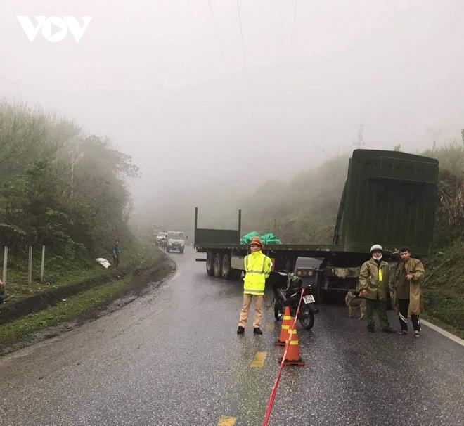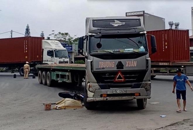 Tại Hải Phòng, khoảng 11h30, xe đầu kéo BKS 15C-129.0x kéo theo rơ moóc 15R-061.2x do tài xế Bùi Văn D (SN 1975, trú tại thôn Đề Xuyên, xã Đại Thắng, huyện Tiên Lãng, TP Hải Phòng) di chuyển theo hướng từ vòng xuyến cuối cao tốc Hải Phòng - Hà Nội về cảng Chùa Vẽ.