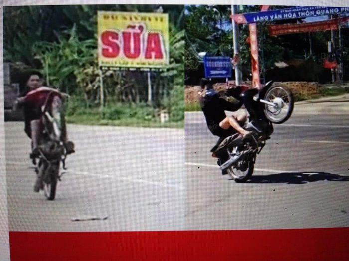 Hai thanh niên bốc đầu xe máy bị xử phạt