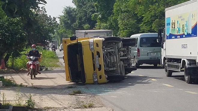 Khi xe đến khu vực ấp 4 (xã Phạm Văn Hai, huyện Bình Chánh) thì bánh sau xe rơi ra ngoài. Do ở tốc độ cao, đang chở nặng nên chiếc xe mất thăng bằng lật ngang, trượt dài một đoạn rồi mới dừng lại.