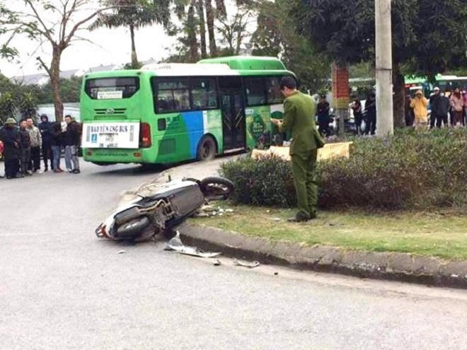 Khi đến đoạn sân bóng sau tòa nhà CT3 thì xảy ra va chạm với xe buýt mang BKS: 29B-505.22 do anh Đoàn Văn Đ (SN 1984 ở xã Tiên Dược, huyện Sóc Sơn, TP Hà Nội) điều khiển.