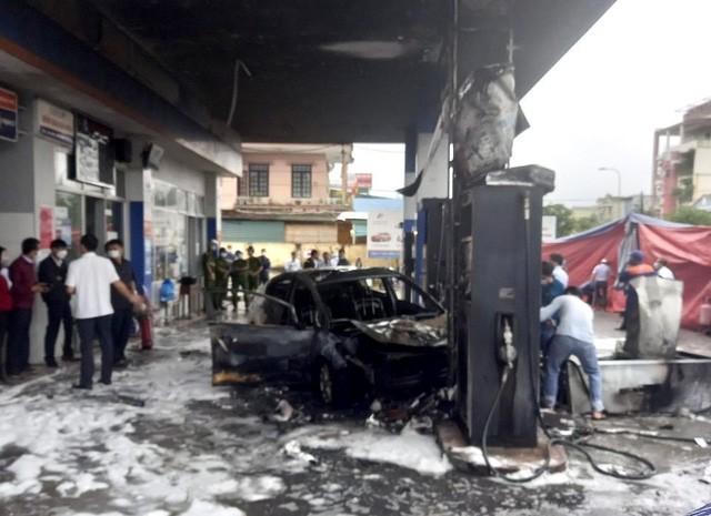 Vụ cháy đã làm hư hỏng phần lớn chiếc xe ô tô con và hai cột xăng, gây ra thiệt hại lớn về tài sản.