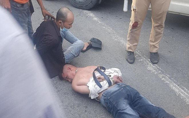 Đối tượng tiếp tục bỏ chạy qua chốt chặn của Tổ CSGT, đánh lái tông vào xe mô tô của lực lượng CSGT khiến đồng chí Nguyễn Quyết Thắng bị thương ở chân phải, xe mô tô hư hỏng nặng.