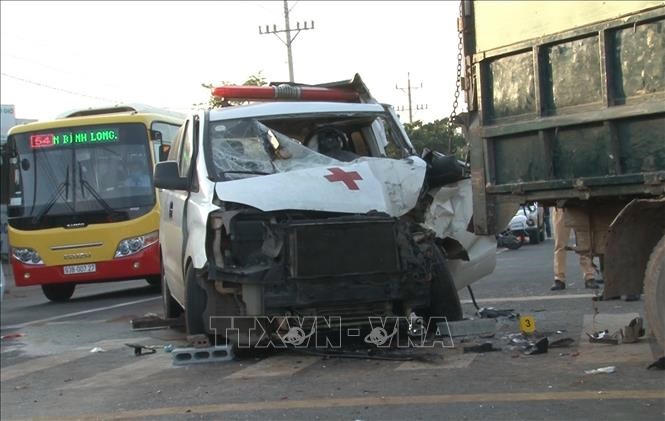 Còn tại Bình Phước, khoảng 5h20, xe cấp cứu do Vũ Tuấn Anh (49 tuổi, ngụ xã Lộc Thạnh, huyện Lộc Ninh, tỉnh Bình Phước) điều khiển lưu thông từ TP HCM đi huyện Hớn Quản đã đâm trực diện vào đuôi chiếc xe tải đang dừng chờ qua đường ngay sát dải phân cách giữa tại ngã tư đoạn giao nhau giữa quốc lộ 13 với đường ĐT.756B, thuộc khu phố 3, thị trấn Tân Khai (Bình Phước).