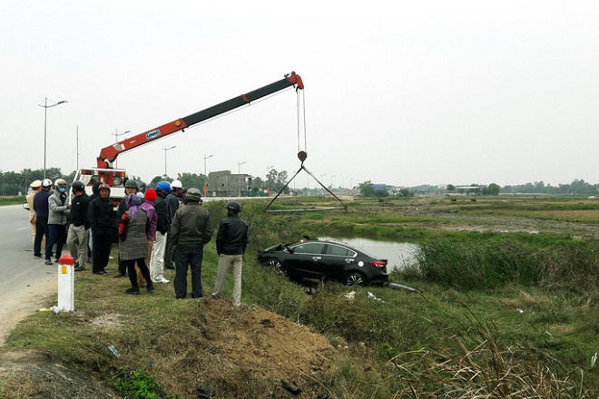 Vào thời điểm trên, xe ôtô 4 chỗ hiệu Toyota Vios mang BKS 36A-309.xx đang lưu thông theo hướng TP Sầm Sơn đi TP Thanh Hóa đã bất ngờ tông bay cột mốc rồi lao xuống ruộng sâu ven đường.