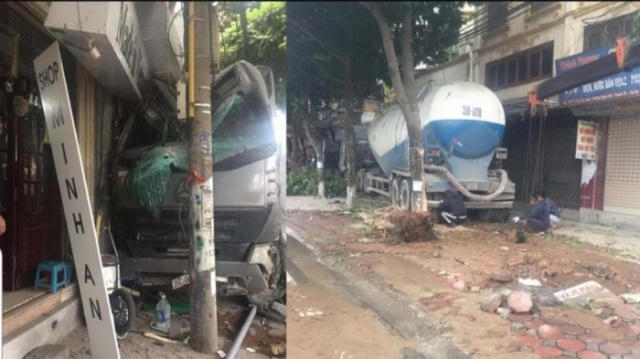 Còn tại Hà Nội, khoảng 3h, xe bồn mang BKS 35C - 042x đang lưu thông trên QL1A, đến số nhà 257 thị trấn Văn Điển, Ngọc Hồi, huyện Thanh Trì thì bất ngờ đâm vào nhà dân và một cột điện ven đường.