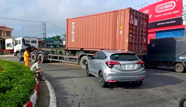 Khoảng 7h, xe đầu kéo mang biển kiểm soát 15C-240.17 (chưa rõ tên tuổi tài xế) điều khiển kéo theo rơ móc đang lưu thông trên đường dẫn cao tốc TP HCM - Trung Lương, hướng đi từ đường cao tốc ra QL1A.