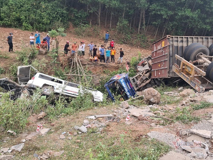Xe container tiếp tục mất lái, đâm liên tiếp vào 3 ô tô chạy ngược chiều gồm xe ô tô BKS 74A-126.59 do ông Nguyễn Văn B (SN 1971, trú tại Tân Hợp, Hướng Hoá) cầm lái, trên xe chở 4 người; xe tải BKS 74D-002.16 do ông Lê Văn Q (SN 1972, trú phường 5, TP Đông Hà) điều khiển, trên xe chở 1 người và xe ô tô BKS 74A-024.65 do Nguyễn Văn H (trú tại Tân Kim, thị trấn Lao Bảo) cầm lái, trên xe chở 1 người.