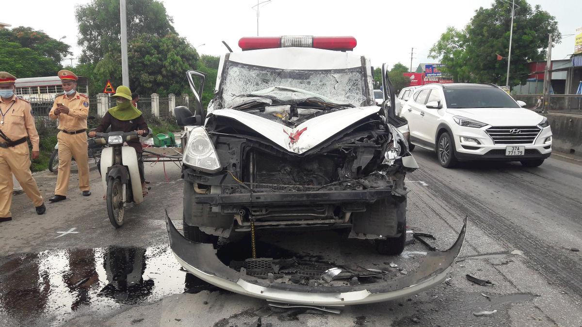 Khi đến địa điểm kể trên, xe cứu thương bất ngờ tông vào đuôi xe tải BKS 37C -086.55 đang lưu thông phía trước.