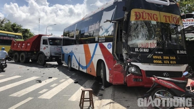 Còn tại Bạc Liêu, trên tuyến QL1 đoạn qua ấp Cái Dầy, thị trấn Châu Hưng, huyện Vĩnh Lợi xảy ra vụ va chạm giữa xe ben chở đất với xe khách giường nằm, khiến nhiều người hốt hoảng.