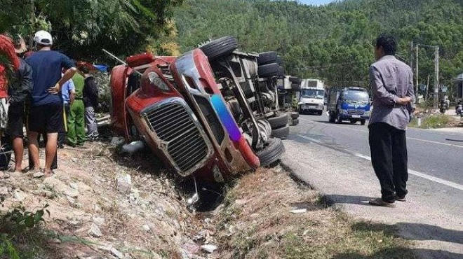Khi đến Km 25+800 trên Quốc lộ 1, đoạn qua địa phận thôn 2 (xã Xuân Hải, TX.Sông Cầu, Phú Yên), do vào đoạn cong nên xe container tự lật nghiêng bên lề đường bên phải và trượt dài một đoạn khoảng 20m, sau đó lật xuống bên lề đường. Phần đầu xe đè một người đàn ông đang đi xe máy cùng chiều phía trước.