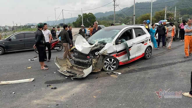 Vụ tai nạn xảy ra khoảng 12h12 tại xã Sủ Ngòi, TP Hòa Bình, tỉnh Hòa Bình. Thời điểm trên, xe ô tô 4 chỗ hiệu Kia Morning mang BKS 28A 045.xx lưu thông với tốc độ khá nhanh trên đường Đê Quỳnh Lâm hướng Sở Y Tế Hòa Bình đi Chăm Mát.