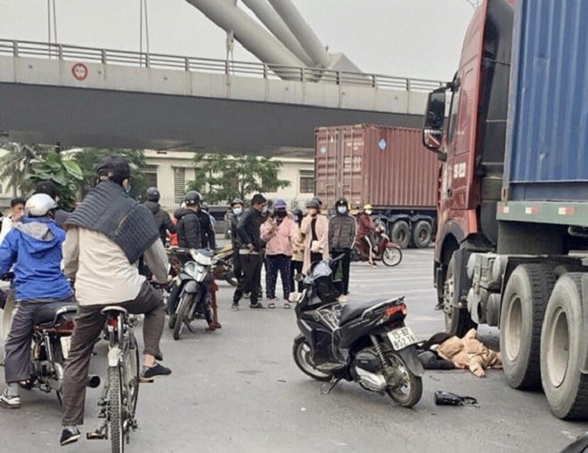 Thai phụ bị xe container tông tử vong, mẹ chồng bị thương