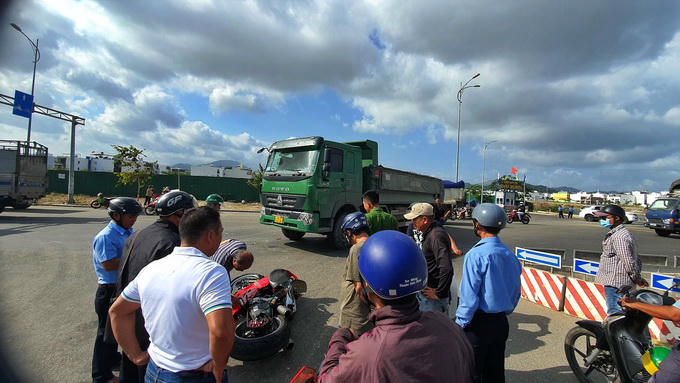 Khoảng 15h, tại đại lộ Võ Nguyên Giáp (xã Vĩnh Thái, TP Nha Trang, tỉnh KHánh Hòa), nam thanh niên điều khiển xe mô tô hiệu Ducati vừa vượt qua cầu Quán Trường để hướng về phía Diên Khánh đã bị xe ben BKS 43LD-00489 tông phải.