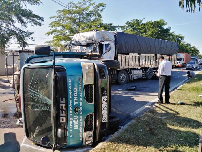 Sáng 22/6, xe tải chở hàng BKS 79C-154.98 do tài xế tên Gấm điều khiển chạy theo hướng Nam-Bắc. Khi đến ngã ba Tân Hội (xã Thành Hải, TP Phan Rang - Tháp Chàm, tỉnh Ninh Thuận) thì tông vào đuôi xe tưới nước công viên trên tuyến tránh QL1 đang chạy tưới cây trên dải phân cách giữa đường.