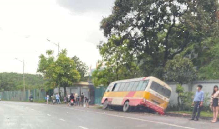 Chiếc xe buýt lao xuống mương, 2 người bị thương. |