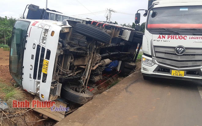 Tại Bình Phước, khoảng 11h, xe ô tô tải BKS 47C-124.62 (chưa rõ danh tính tài xế) chở hàng hóa lưu thông trên Quốc lộ 14, hướng từ tỉnh Đăk Nông đi Thành phố Đồng Xoài. Khi đến đoạn qua thôn 3 (xã Minh Hưng, huyện Bù Đăng) tài xế bất ngờ không làm chủ được tay lái khiến chiếc xe tải lao xuống mương nước bên đường.