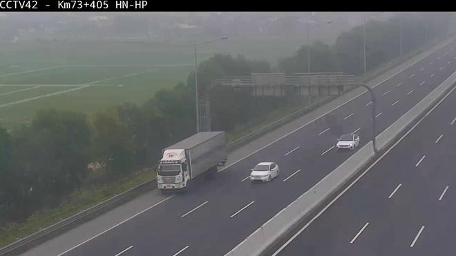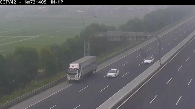 Sau đó tài xế tiếp tục vào đường tại nút giao QL10 đi về nút giao QL38B thuộc địa phận TT Gia Lộc - tỉnh Hải Dương. Hình ảnh từ hệ thống camera giám sát cho thấy thời điểm trên tầm nhìn trên cao tốc có phần hạn chế do thời tiết sương mù.
