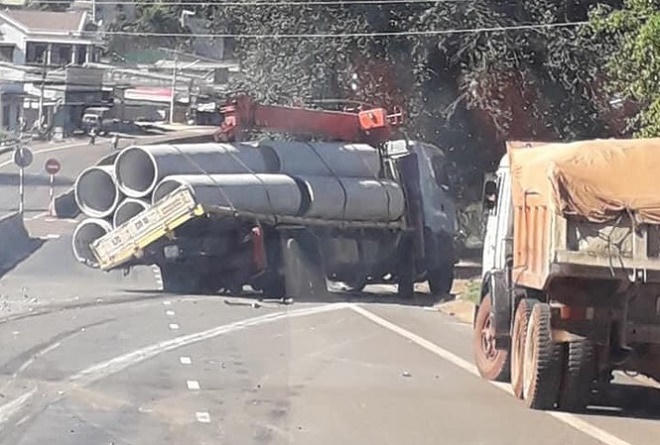 Tại Đắk Lắk, khoảng 15h, tài xế Đặng Quang Hồng (SN 1975, trú tại phường Khánh Xuân, TP Buôn Ma Thuột) điều khiển xe ô tô BKS 47C-239.80 chở đầy ống cống công trình giao thông) lưu thông trên đường Hồ Chí Minh hướng Đắk Lắk – Gia Lai.