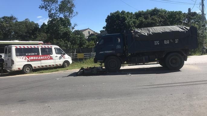 Theo đó, khoảng 15h, chiếc xe tải BKS 37C - 050.37 lưu thông đến đoạn giao giữa đường 35m (đường nối QL46 với đường ven sông Lam) với đường Vinh - Cửa Lò, thì xảy ra tai nạn với 1 xe máy.