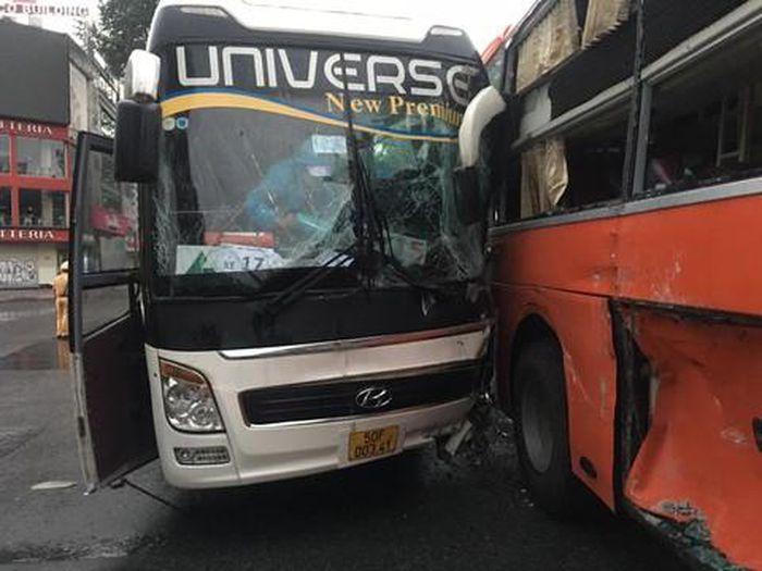 Khi đến giao lộ Trần Hưng Đạo- Nguyễn Thái Học (quận 1, TP HCM), xe này xảy ra va chạm với xe giường nằm chở 20 nhân viên của công ty ở khu chế xuất Tân Thuận (quận 7).