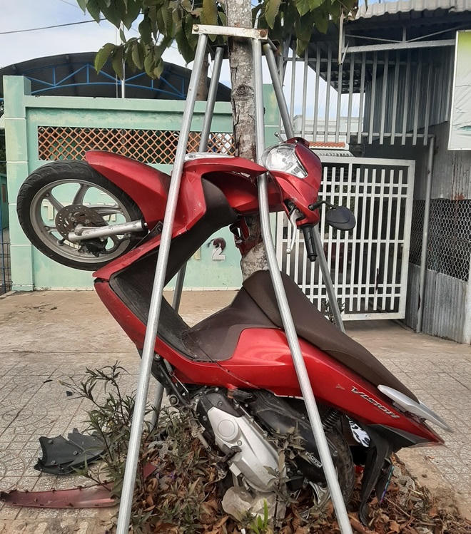 Tai nạn làm chiếc xe máy bể nát, hư hỏng nặng. Còn người đàn ông bị thương nằm bất tỉnh được đưa vào trung tâm y tế TP Dĩ An cấp cứu rồi sau đó chuyển lên bệnh viện đa khoa tỉnh Bình Dương với vết thương nặng ở vùng mặt và đầu.