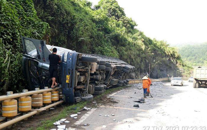 Cụ thể, một xe đầu kéo BKS 36H - 005.23 thùng chở đầy đá di chuyển theo hướng Sơn La – Hòa Bình. Khi đến vị trí trên thì mất kiểm soát va chạm mạnh vào Hệ thống rào chắn bánh xoay ETI đã được lắp đặt tại đây sau đó thì lật nghiêng. Hậu quả, đầu và thùng xe tải hư hỏng, hàng hóa trên xe đổ vãi ra đường. Rất may là không có thiệt hại về người.