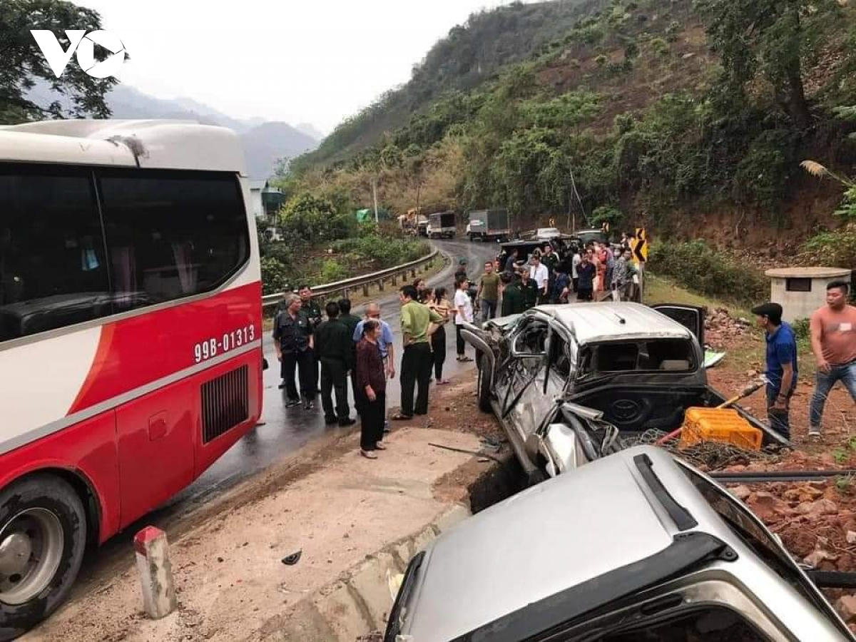 Khoảng 17h50, tại Km 208+500 (Quốc lộ 6, địa phận huyện Mộc Châu, tỉnh Sơn La) xảy ra vụ tai nạn giao thông liên hoàn giữa 3 xe ô tô, khiến 4 người bị thương.
