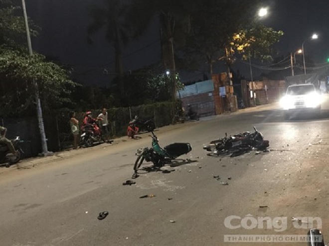 Cú va chạm trực diện làm 2 nam thanh niên văng xa rồi nằm bất động, hai nạn nhân sau đó được chuyển vào bệnh viện 175 cấp cứu trong tình trạng nguy kịch. Tại hiện trường, hai chiếc xe máy bể nát, hư hỏng nặng.