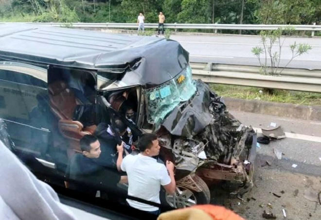Khi đi đến đoạn qua địa phận huyện Cẩm Khê (tỉnh Phú Thọ), chiếc xe này bất ngờ đâm thẳng vào đuôi xe đầu kéo (chưa rõ BKS và danh tính người điều khiển) đang di chuyển cùng chiều.