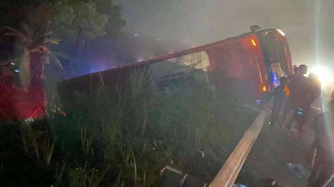Vụ tai nạn xảy ra tối 29/12, khi một xe khách giường nằm di chuyển trên cao tốc Nội Bài - Lào Cai hướng đi Hà Nội đến địa bàn huyện Cẩm Khê (tỉnh Phú Thọ) thì mất lái, tông đổ lan can đường cao tốc rồi lật ngang.