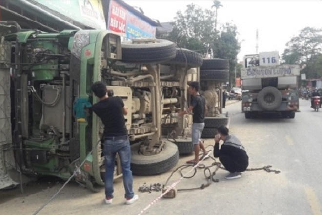 Xe tải bị lật, tài xế tử vong thương tâm