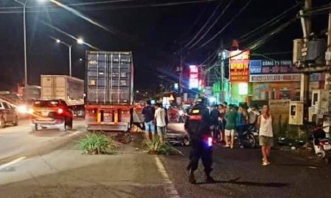 Khi đến địa phận huyện Long Thành, xe máy xảy ra va chạm với xe container mang BKS 51R kéo theo rơ-mooc thùng hàng (chưa rõ biển số) lưu thông cùng chiều phía sau.