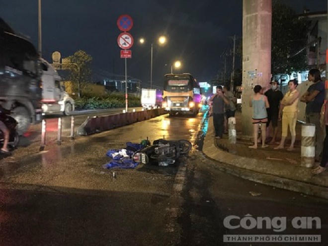 Va chạm làm cho người phụ nữ ngã xuống đường bị xe khách cán qua người tử vong. Tại hiện trường, chiếc xe máy và thi thể nạn nhân nằm cách xe khách 15m, hiện trường nằm trong làn xe máy. Nhận thông tin, Công an quận Thủ Đức đã đến khám nghiệm hiện trường, điều tiết phân luồng giao thông.