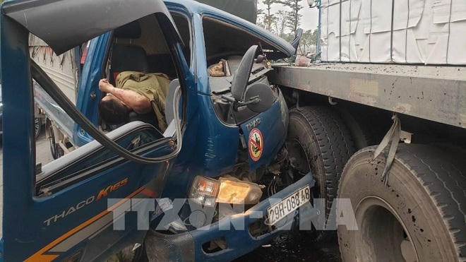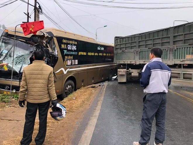 Vụ va chạm đã làm xe tải bị hư hỏng nặng phần đầu, lái xe bị thương nặng. Đoạn đường bị ách tắc cục bộ hàng km.
