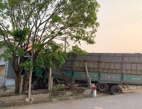 Còn tại Quảng Ngãi, khoảng 5h, xe tải chở gỗ dăm BKS: 76C-086.84 do ông Nguyễn Văn Đ (trú xã Đức Lân, huyện Mộ Đức) điều khiển lưu thông trên Quốc lộ 24C. Khi đến Quốc lộ 24C (thuộc xóm 1, thôn Thạch An, xã Bình Mỹ, huyện Bình Sơn), xe tải bất ngờ mất lái, lao vào một nhà dân bên đường.
